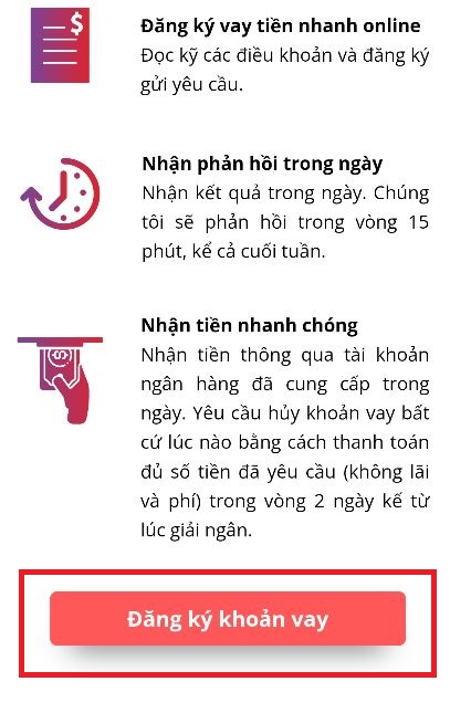 Bước 2: Nhấn nút Đăng Ký Vay để gửi thông tin khoản vay về cho hệ thống Senmo xét duyệt.