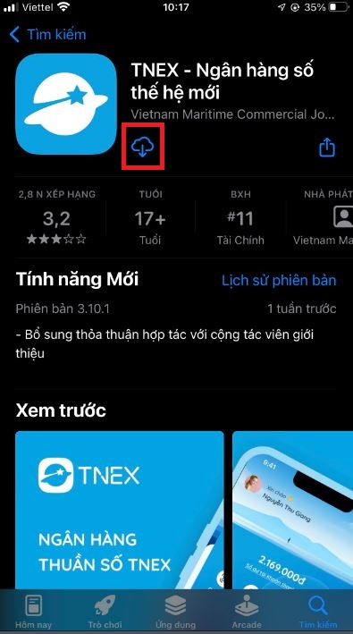 Bước 3: Kết quả tìm kiếm hiện ra, lựa chọn App Tnex và nhấn vào nút Cài Đặt.