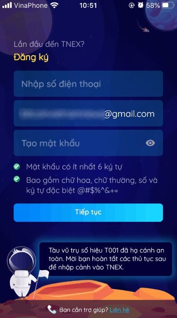 Bước 5: Ở giao diện ban đầu của App Tnex, nhấn vào nút Đăng Ký để mở tài khoản mới.