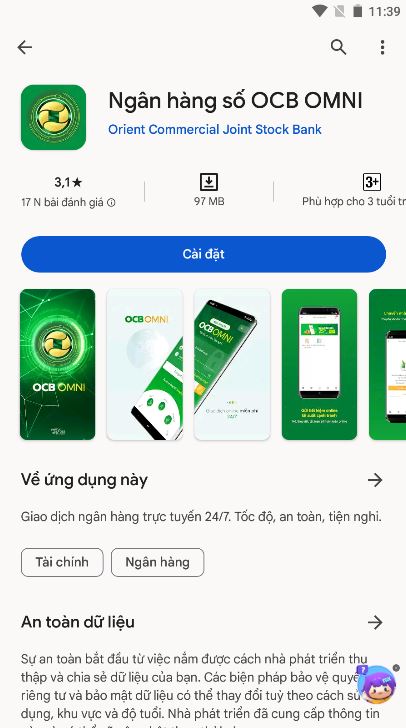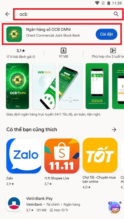 Bước 2: Tại mục tìm kiếm, nhập từ khóa “OCB” để nhận app.