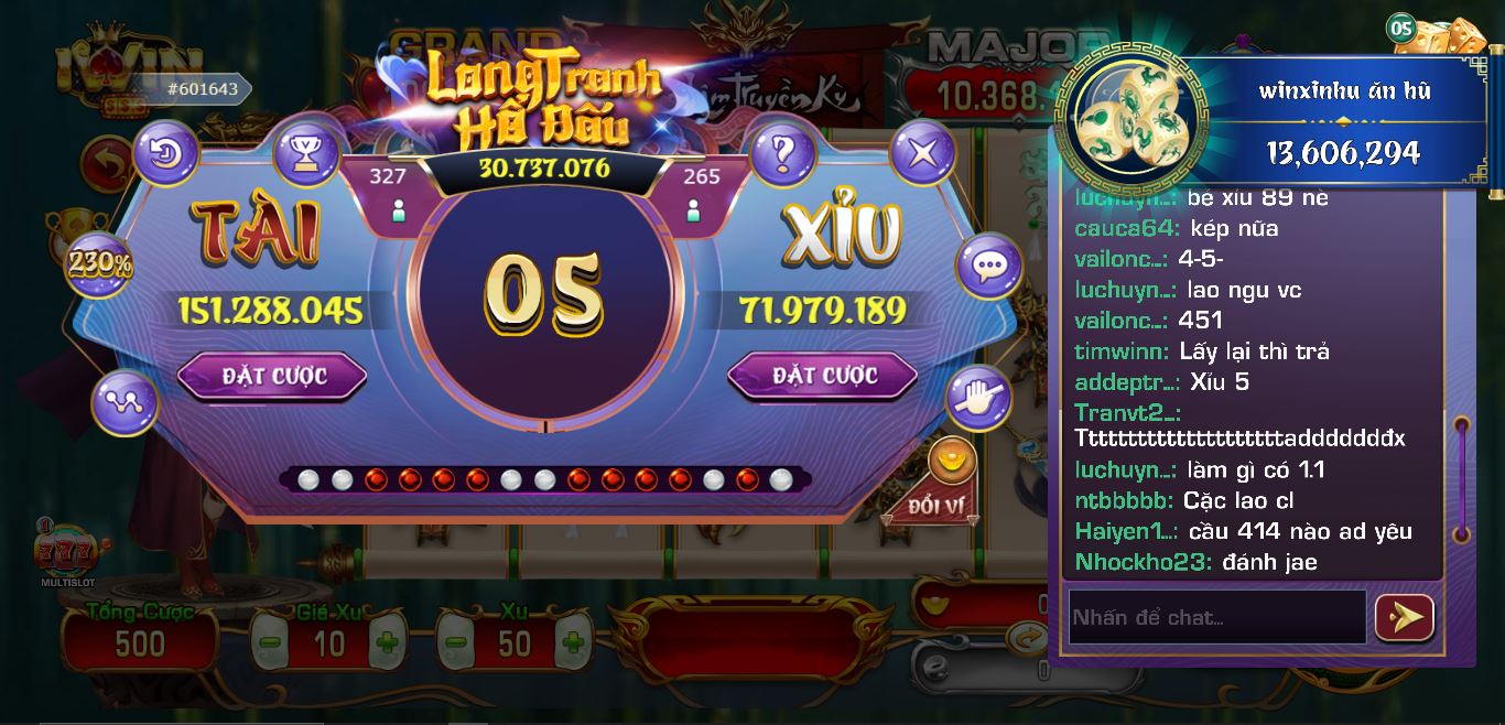 Tài xỉu là trò chơi thu hút số lượng người chơi đông nhất tại iWin Club. Trò chơi không yêu cầu vốn cược quá cao và có tỷ lệ ăn thưởng khá ngon lên đến 50%. Không cần quá nhiều kinh nghiệm để chơi Tài Xỉu tại iWin Club. Chỉ cần một chút may mắn, bạn có thể gia tăng vốn cược 50.000 đồng của mình một cách nhanh chóng.