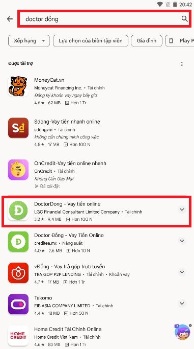 Bước 3: Trang tìm kiếm hiện ra, lựa chọn App Doctor Đồng và nhấn vào nút Cài Đặt.
