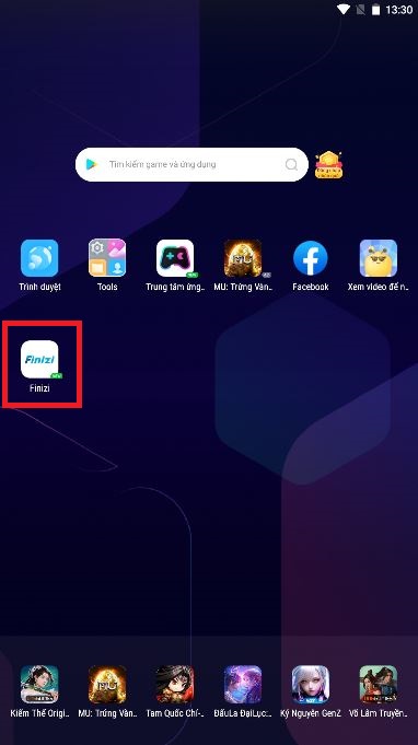 Bước 2: Nhấn vào mục tìm kiếm và nhập từ khóa “App Finizi”.