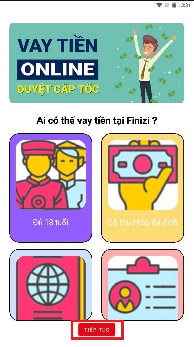 Đáp ứng được các điều kiện trên thì tiếp tục tải App Finizi về tiến hành vay tiền đầu tư iWin Club ngay nào.