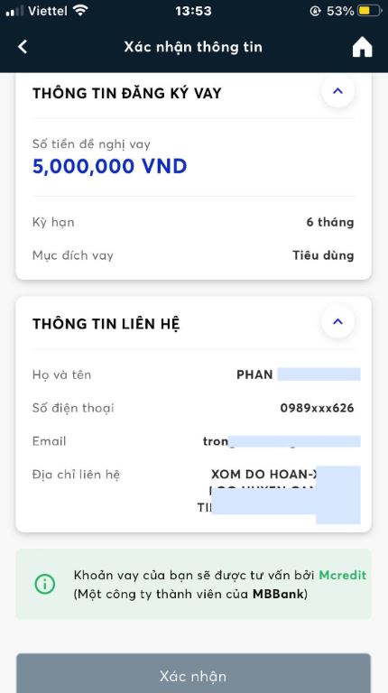 • Không có khoản vay chưa tất toán tại MB Bank.