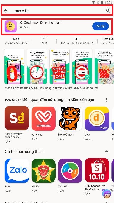 Bước 2: Tìm kiếm App Oncredit với từ khóa “Oncredit”.